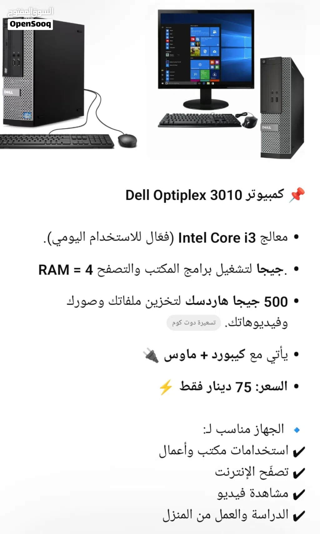 كمبيوتر للبيع dell3010