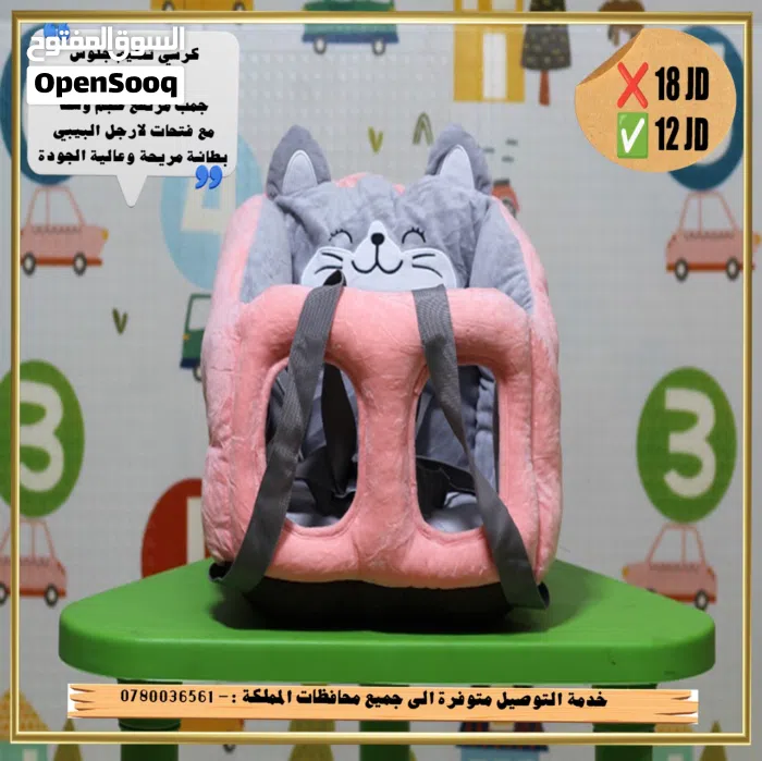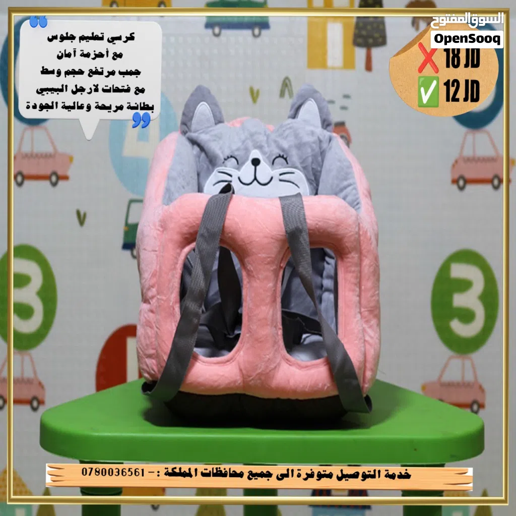 مقعد إسفنج مع حزام آمان لتعليم الرضع الجلوس بتصاميم كرتونية مقعد تعليم جلوس تتوفر خدمة التوصيل