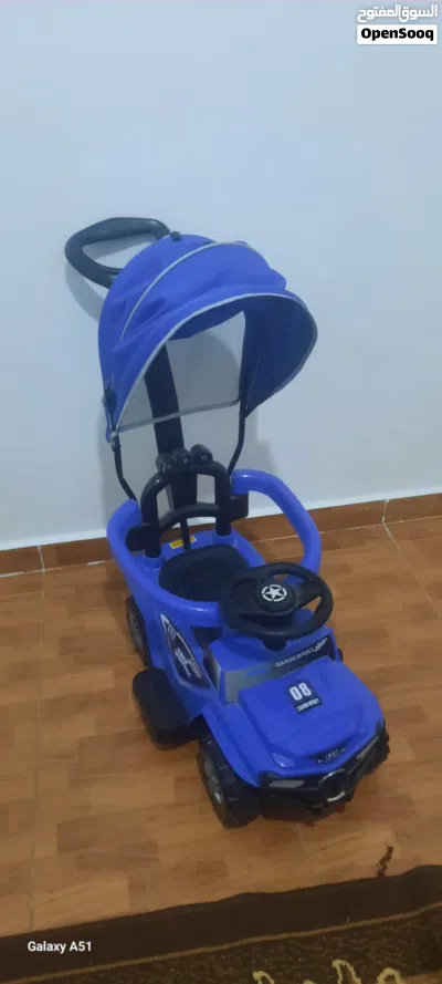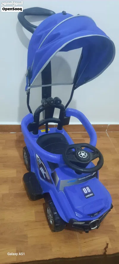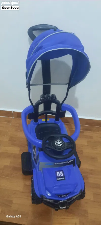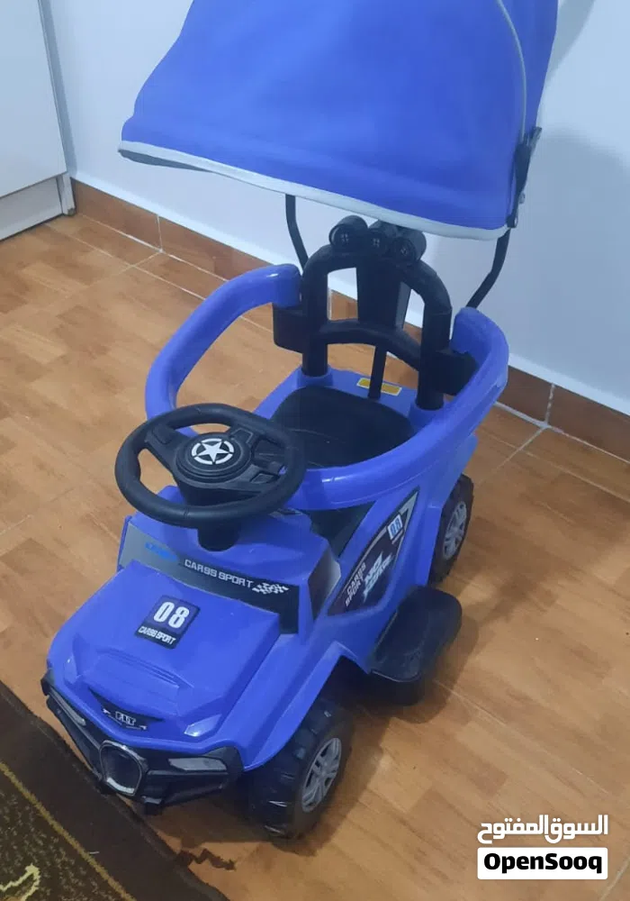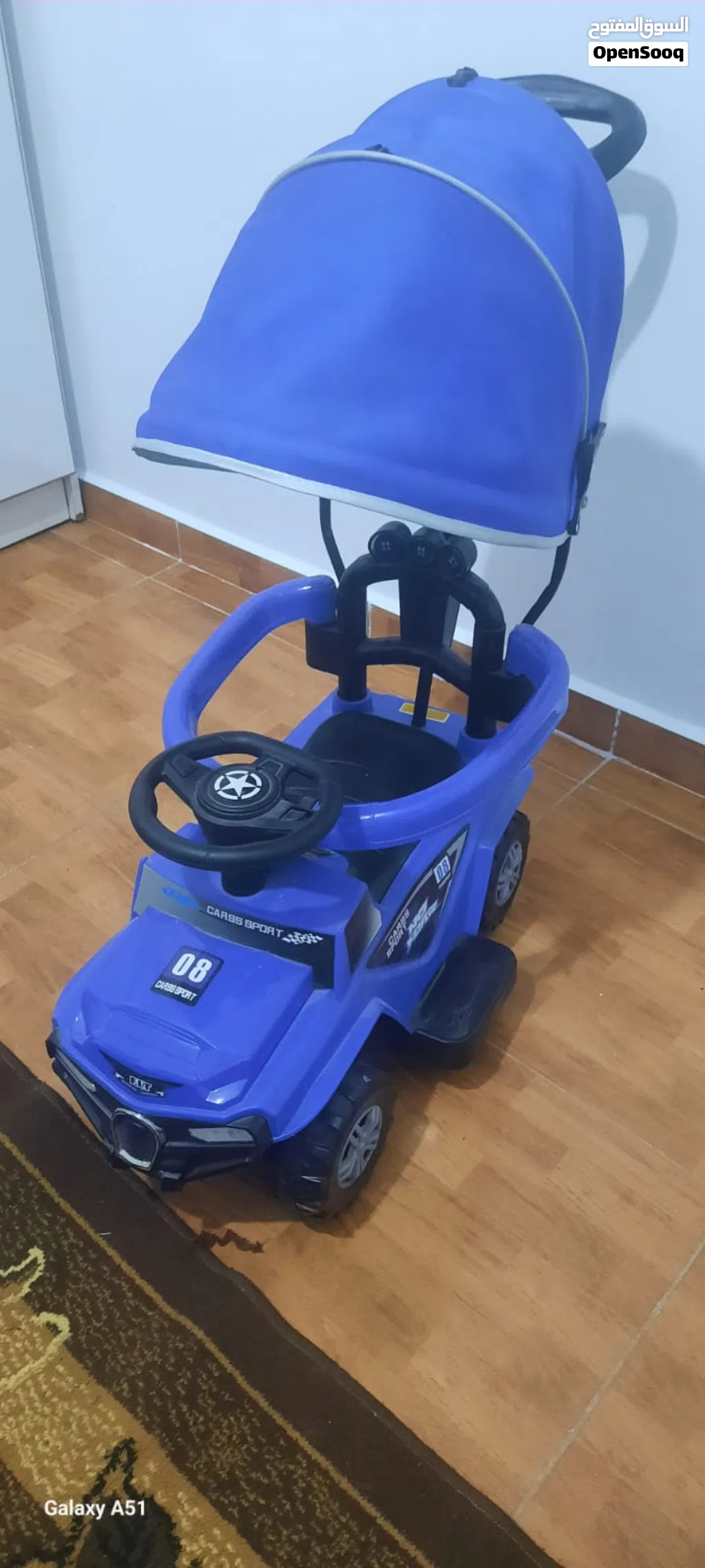 سيارة اطفال مع مظلية للوقاية من الشمس لون ازرق جميلة جدااا 11دينار شامل التوصيل داخل عمان