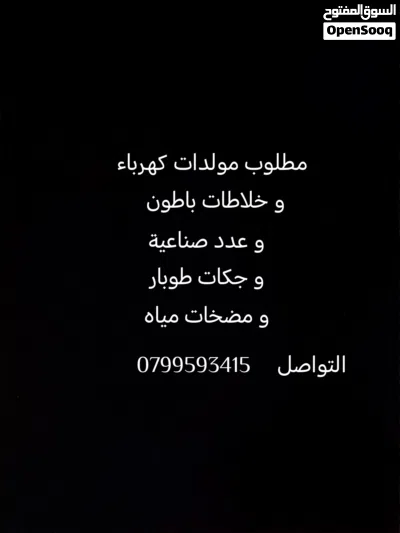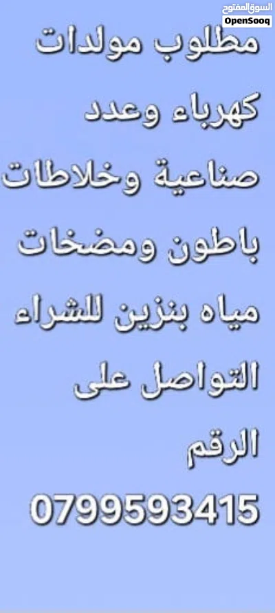 مطلوب مولد كهرباء بنزين اوديزل خلاطات باطون جكات طوبار مضخات بنزين شغال أو معطل عدد بناء
