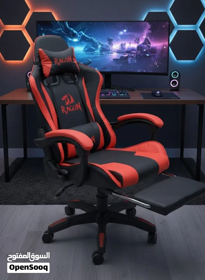 كرسي جيمنج ماركة Ragon محشو بلكامل من القاعدة لغاية الرأس كرسي ثقيل ومرتب ومكفول والبضاعة الثقيلة