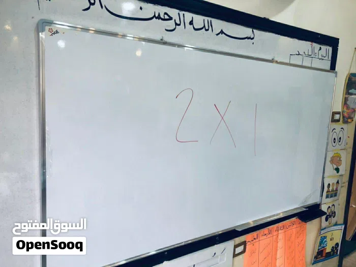 سبورة تعليمي وايت بورد مع اقلام ومحاية 2*1 متر تعليق عالحيط 45 دينار