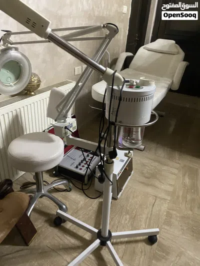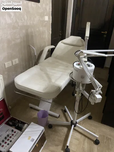 تخت طبي مساج + جهاز تعقيم + جهاز تنضيف بشرة + كرسي دوار+ جهاز بخار مع ضوء