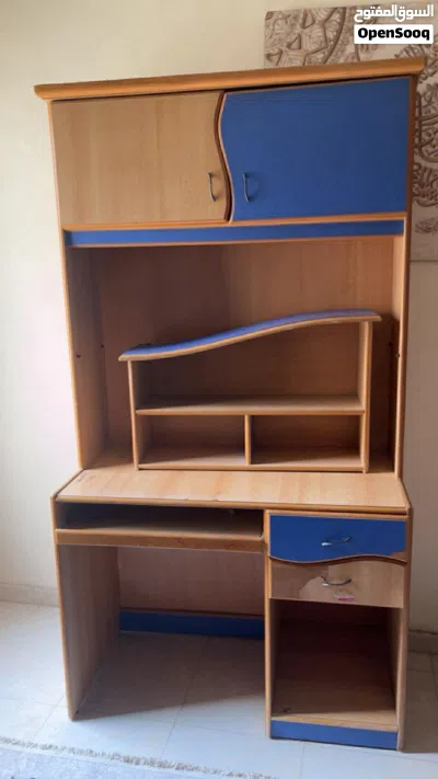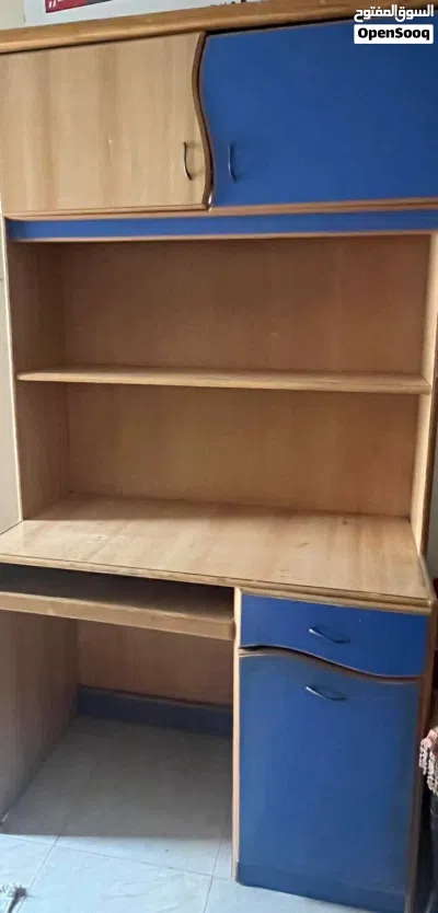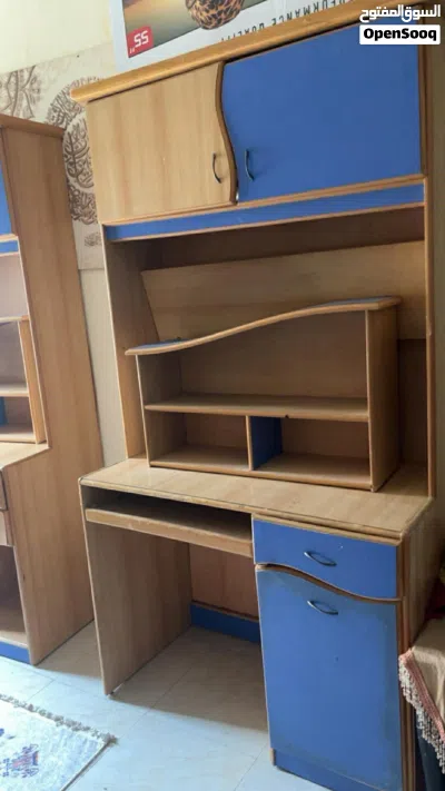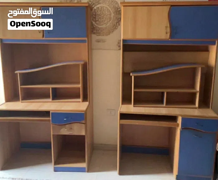 مكتبين مع رفوف واماكن تخزين بحالة جيدة نوع الخشب بلوط ملبس لمنيت مفصلات تفصيل ليس جاهز للبيع بسعر ممتاز