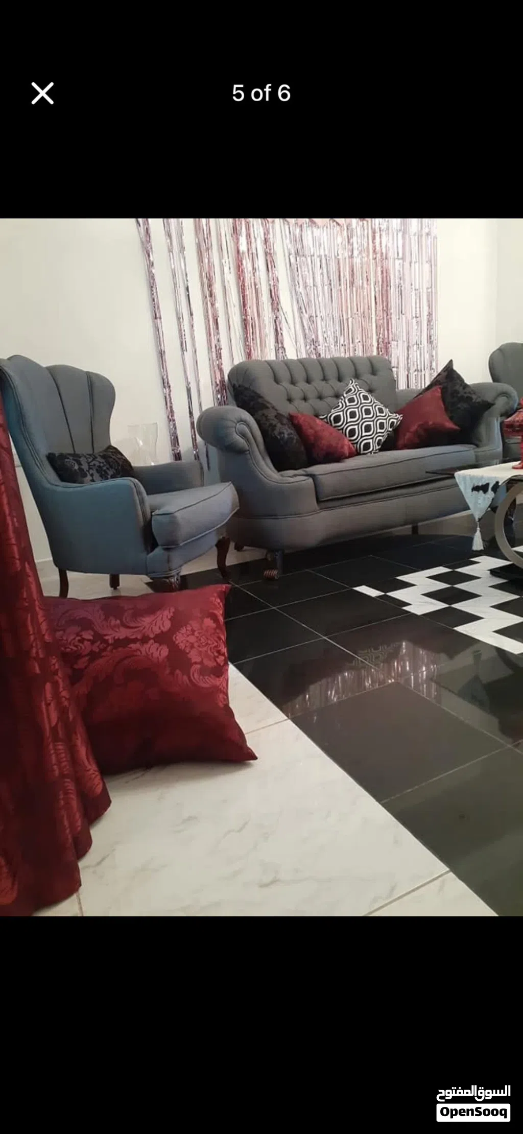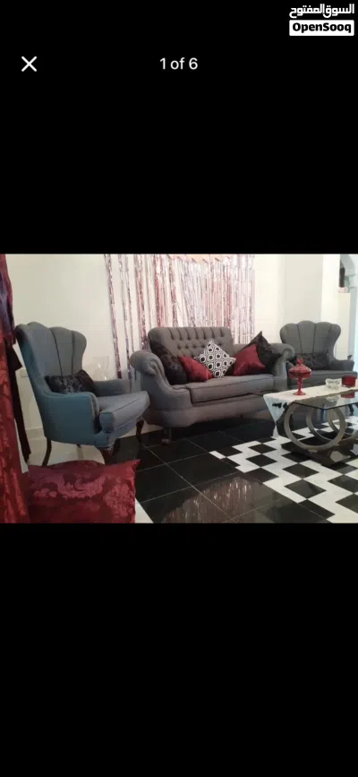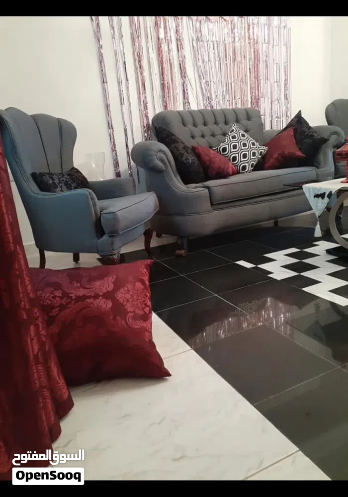 طقم كنب فخم من مفروشات الشيخ ثنائية وثلاثية ومفردتين استعمال بسيط بحالة الجديد مع طاولة وسط