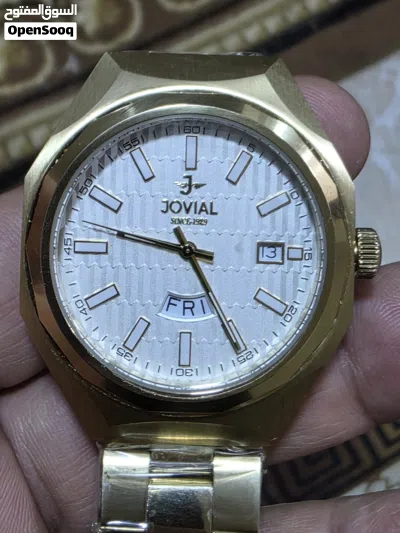 النوعية (الماركة): جوفيال (Jovial)، وهي ماركة ساعات سويسرية الصنع ("SWISS MOVT"). الساعة مصنوعة من "ALL STAINLESS STEEL" (جميعها من الفولاذ المقاوم للصدأ).