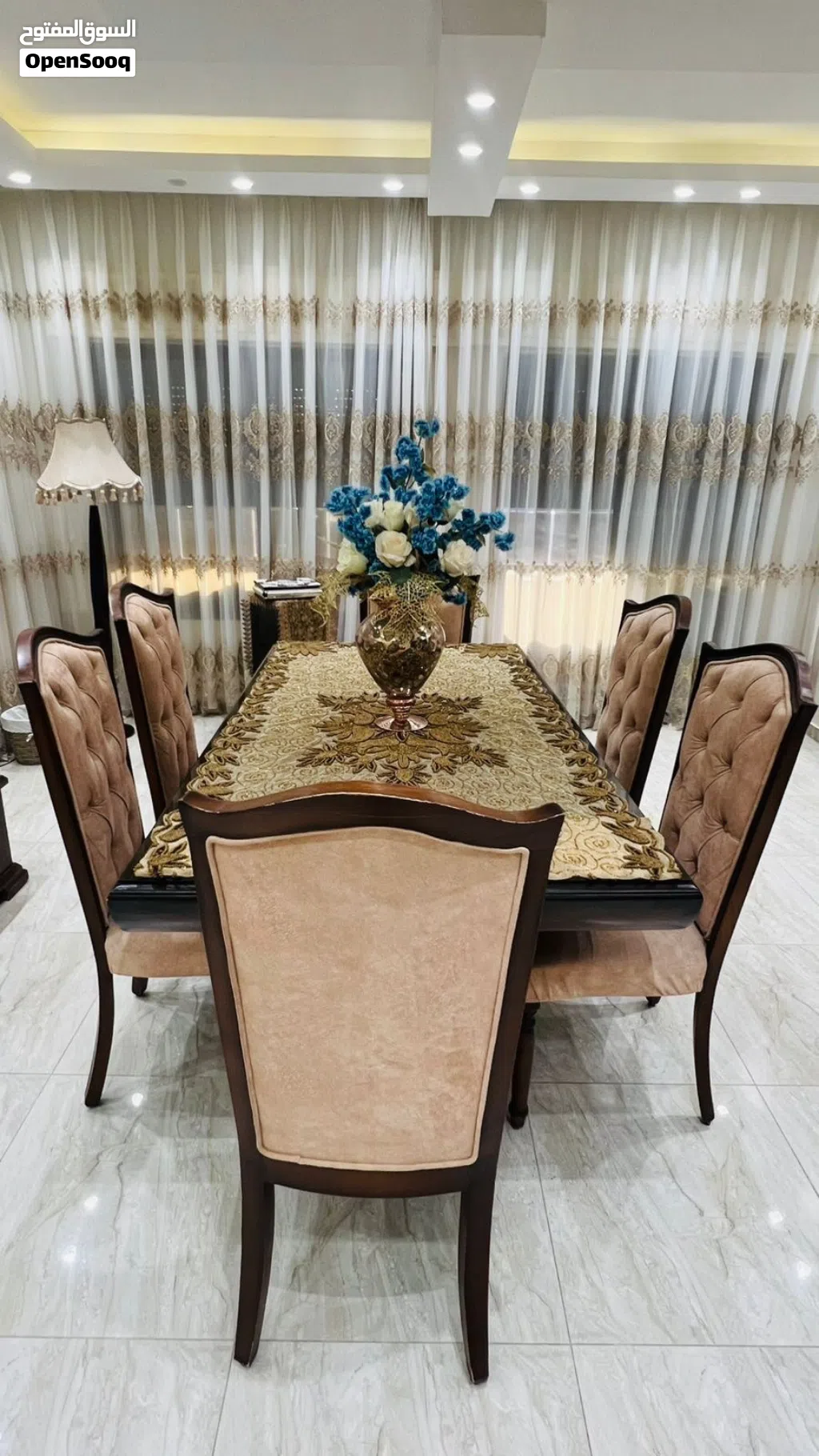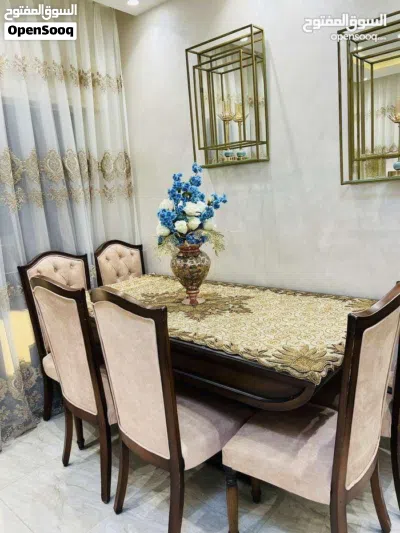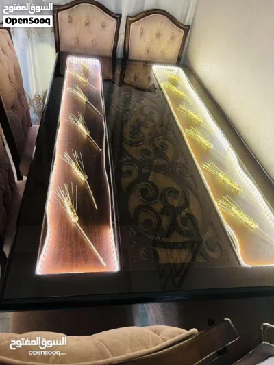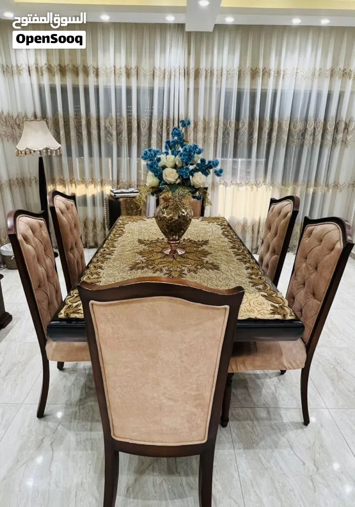 طاولة سفرة بحالة ممتازة استعمال خفيف مع 6 كراسي منجدين وإنارة داخلية خشب زان بسعر 300 دينار للجادين اضغط لإظهار رقم الهاتف 9627977002XX