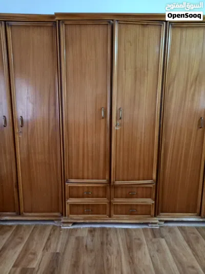 غرفة نوم مستعمله بحاله جيده خشب لاتيه وزان حفر خزانة 6 ابواب عرض 3.25 متر ×طول 2.20 متر