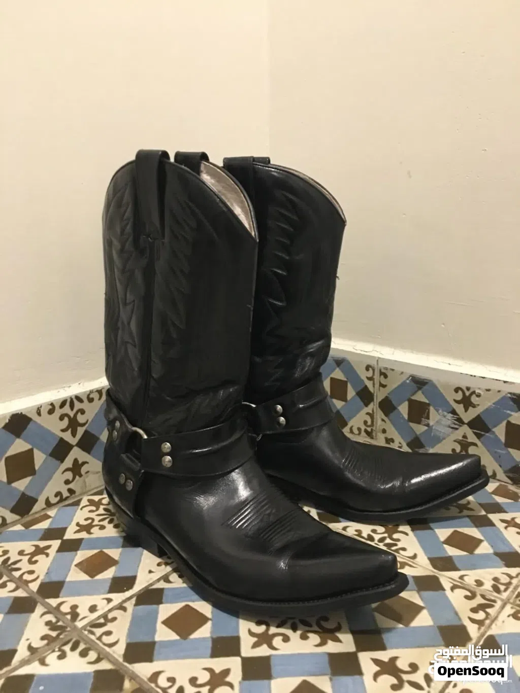 تصميم ويسترن كلاسيكي مع مقدمة مدببة وكعب ثابت وبطانة داخلية مريحة
