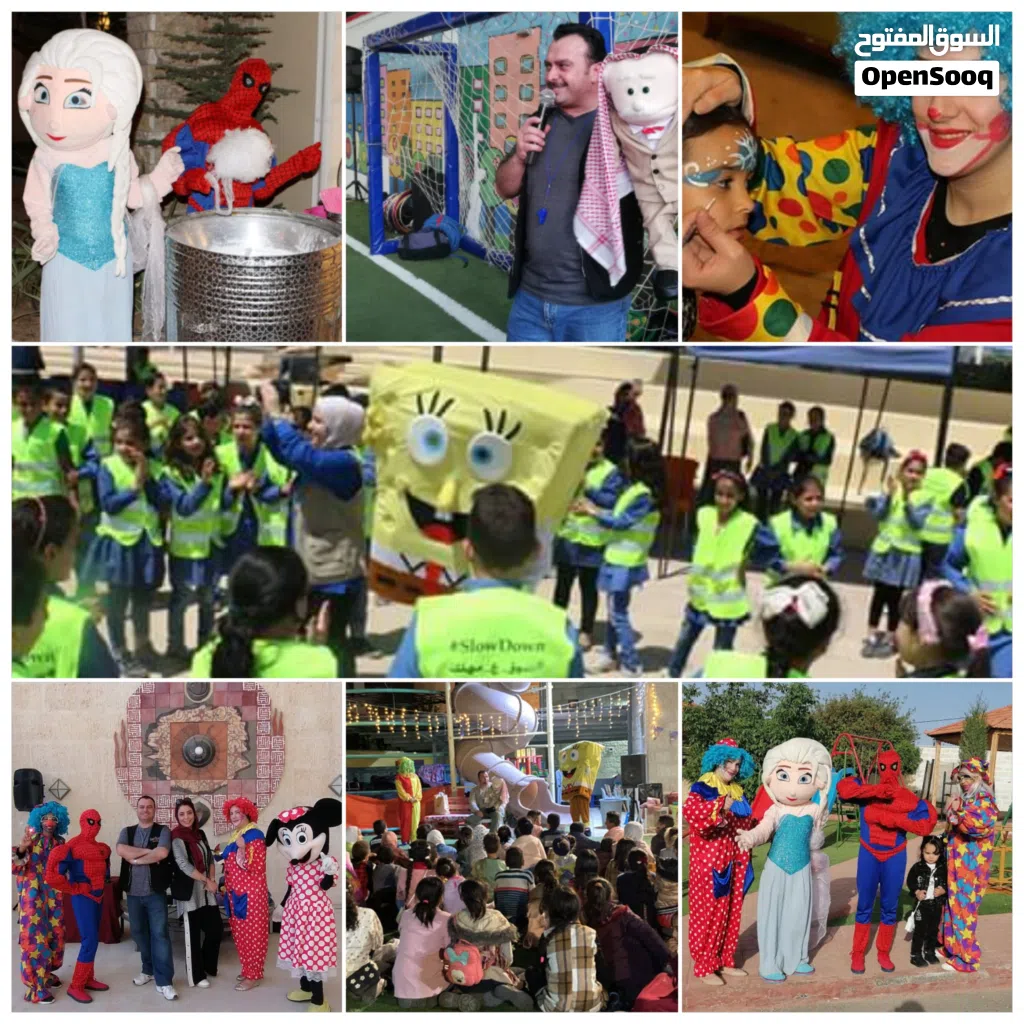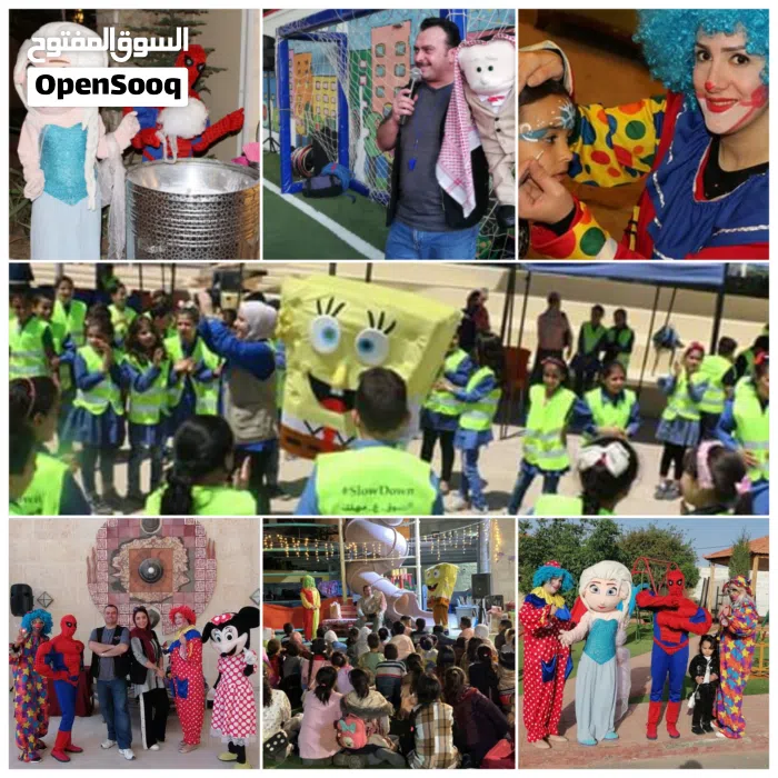 مهرجين _شخصيات كرتونية _ديجي _تصوير _رسم على وجوه الأطفال _العاب نفخ _عربايات بوب كورن وشعر البنات