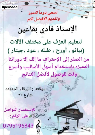 ما هو عدد الإعلانات في مدرّس موسيقى على السوق المفتوح؟