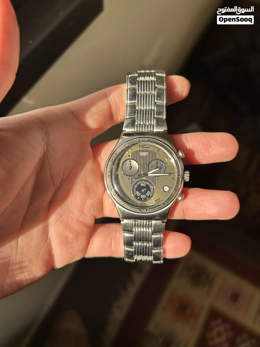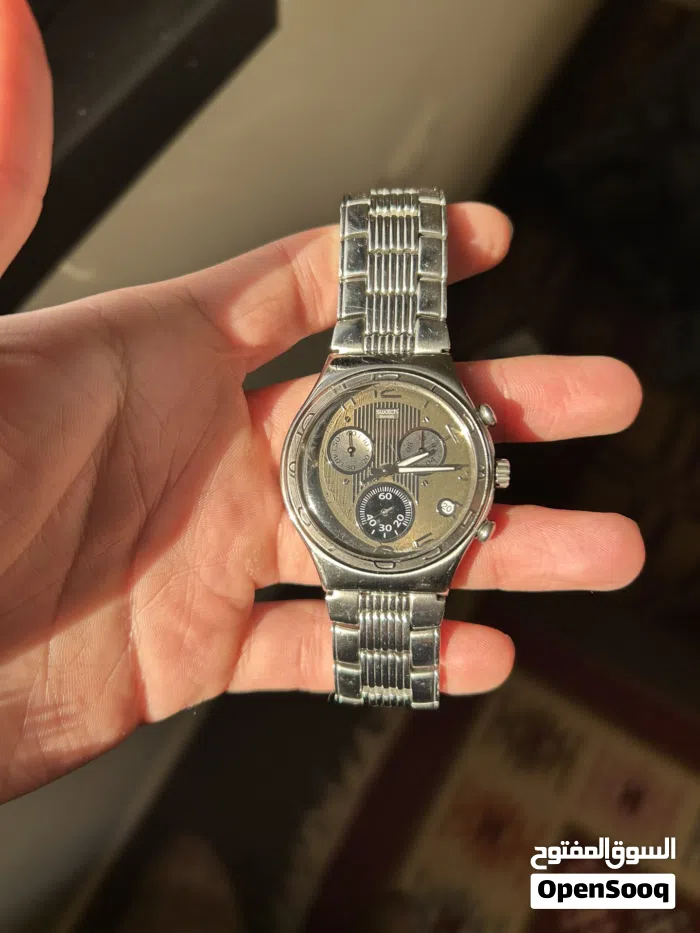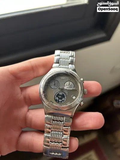 ساعة سواتش سويسري اصلي مقاس 40mm موديل مميز جدا ونادر بحالة جدا ممتازة وشبه الجديد شبه خالية من الخدوش فقط شعر بسيط وخفيف على القزاز الامامي موضح بالصور الساعة للبيع او للبدل