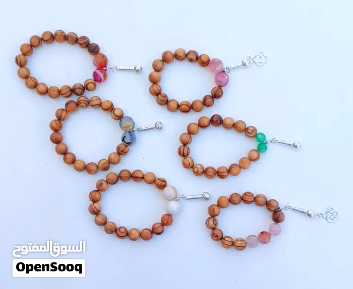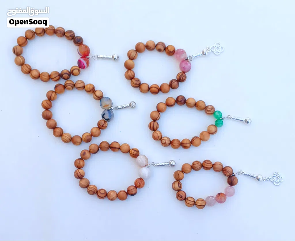 اساور مصنوعة من خشب الزيتون والعقيق الطبيعي