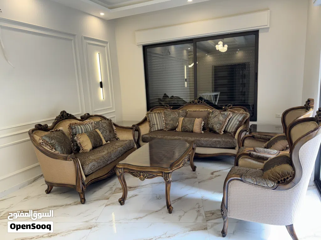 طقم كلاسيك 7 مقاعد مع طاولة وسط و طاولتين جانبيات