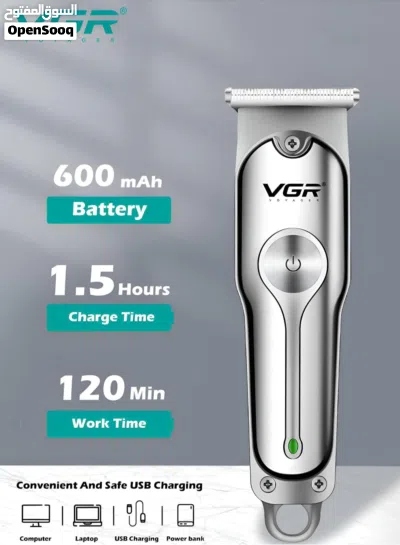 وقت العمل: بطارية ليثيوم أيون مدمجة قابلة لإعادة الشحن، توفر ماكينة قص الشعر أكثر من 120 دقيقة من التشغيل بعد شحن لمدة 1.5 ساعة، مع شاشة LED تعرض عمر البطارية، وتنبهك عندما يحين وقت الشحن.