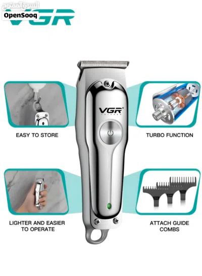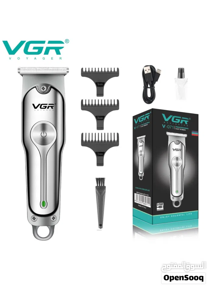 ماكينة حلاقة وتشذيب الشعر بوقت عمل يصل إلى 120 دقيقة، بطارية سعة 600 مللي أمبير مع 3 مشط توجيه وإضاء