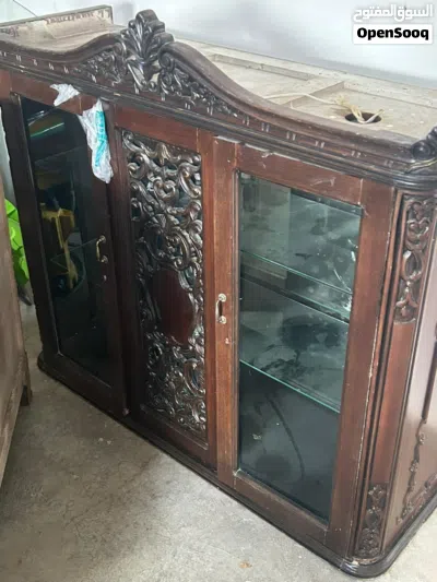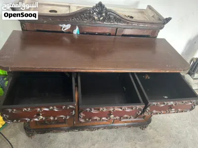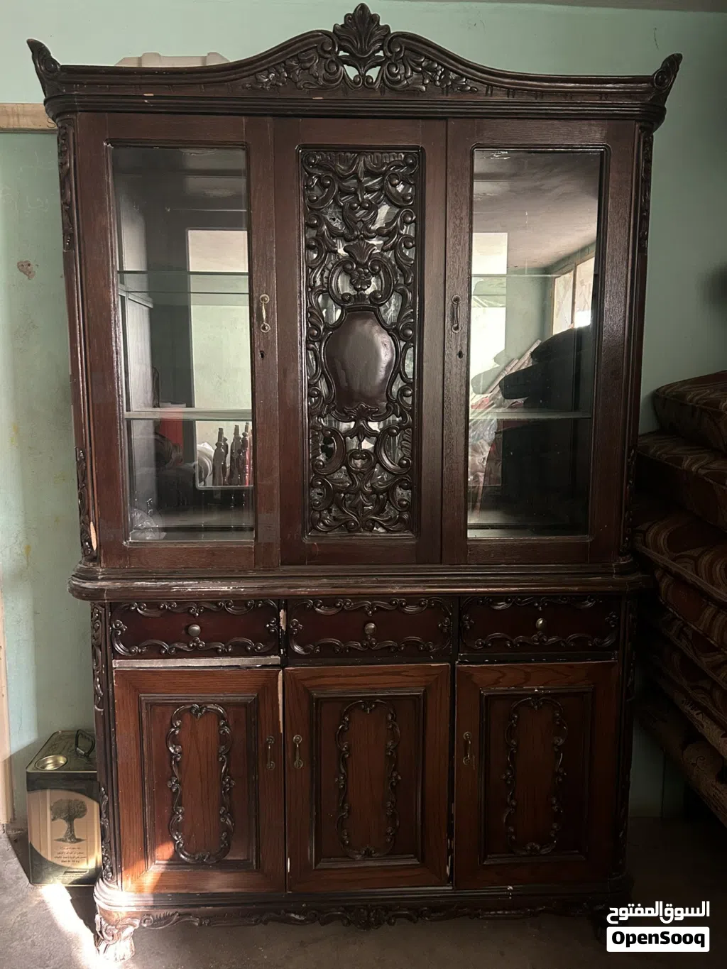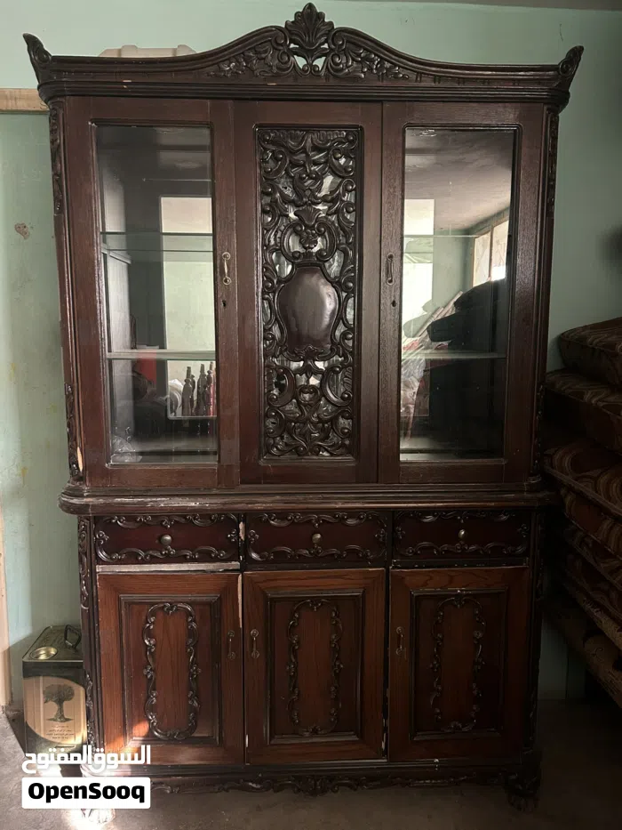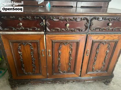 للبيع بوفيه خشب بلّوط أصلي بتصميم كلاسيكي أنيق، منقوشه بنقوش يدويا دقيقة وأرجل منحوتة