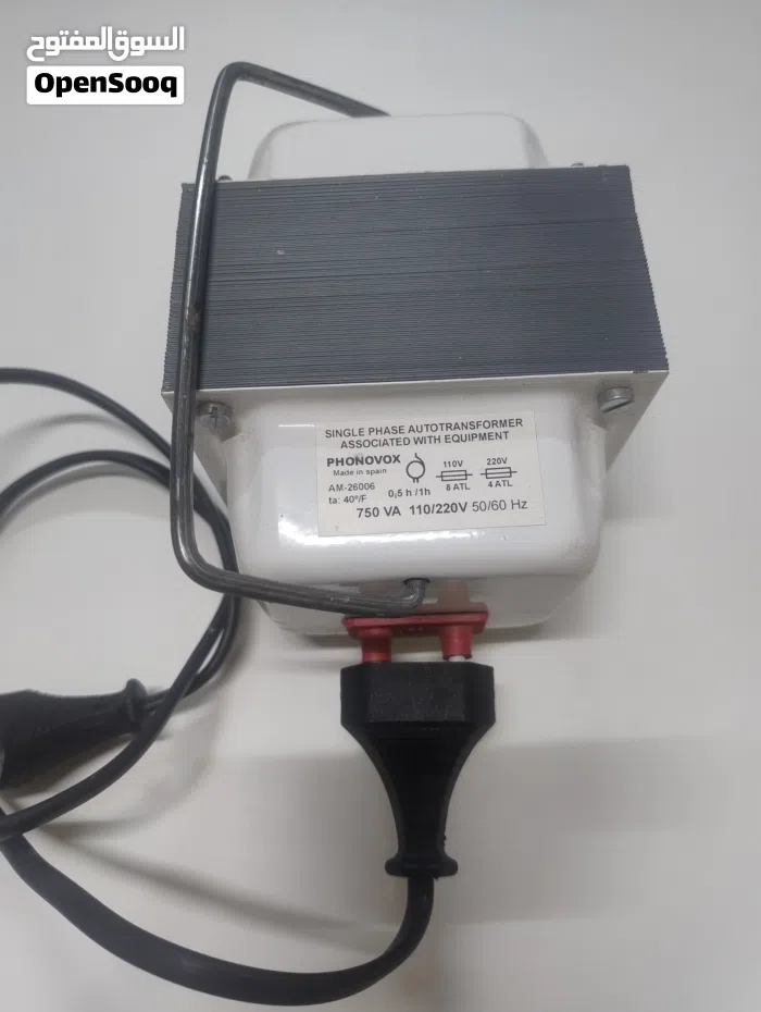 محول كهرباء (Transformer) أصلي من ماركة Phonovox، يتميز بقدرة عالية تصل إلى 750 فولت أمبير (VA). المحول مصمم لتحويل الجهد بين 110 و 220 فولت تيار متردد بكفاءة عالية.