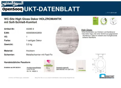 للبيع بالجملة ولأصحاب المستودعات والشركات المهتمة بالمنتجات الأوروبية عالية الجودة. يتوفر لدينا كمية (1600 غطاء) تواليت بمواصفات ألمانية عالمية، وارد ألمانيا مباشرة (Sitzplatz / Sanitop-Wingenroth).