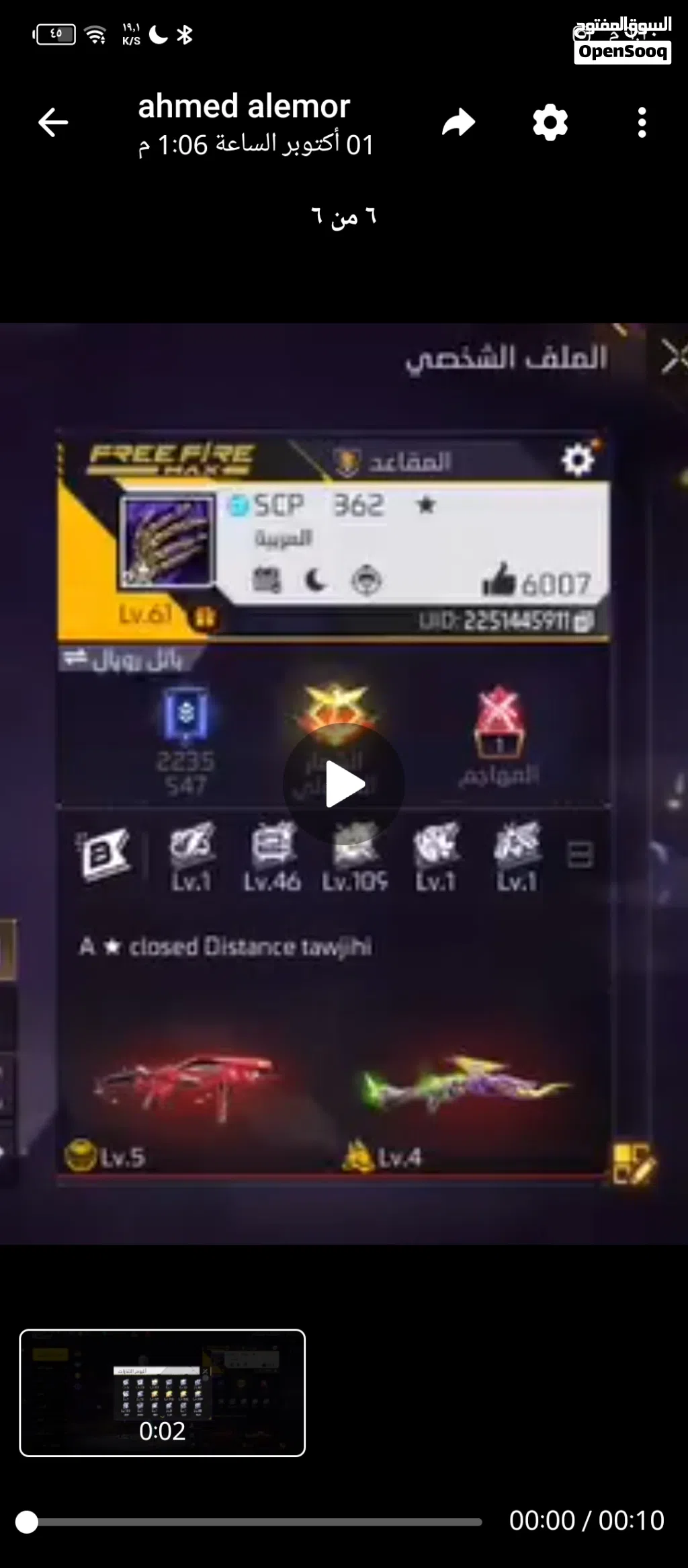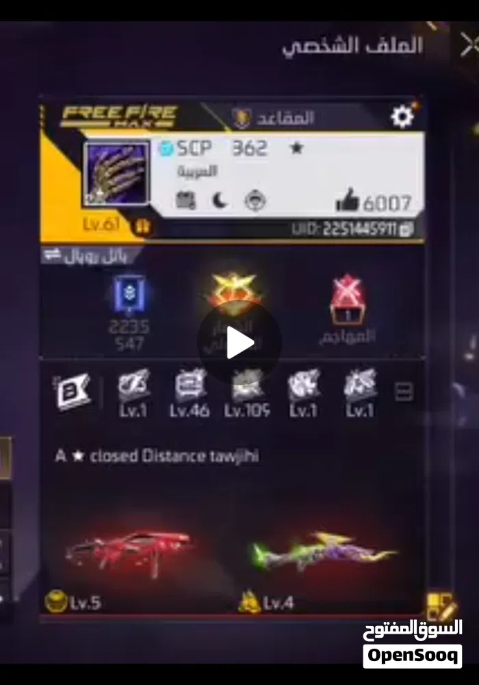 حساب فري فاير للبيع لڤل 61 4 اسلحه مطوره