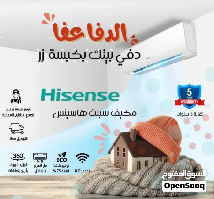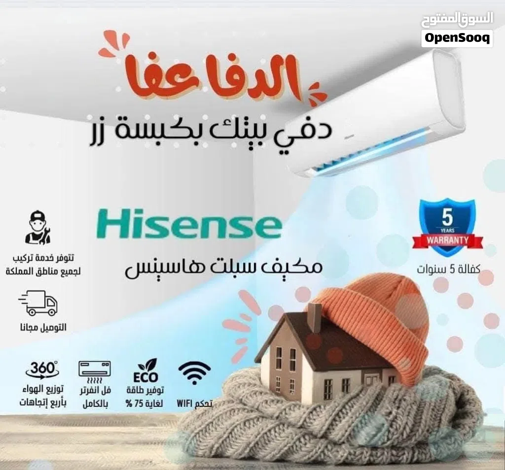 مكيف هايسنس 2 طن موديل 2026 اعلى توفير الطاقه 70% كفاله 10 سنوات
