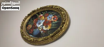 لوحة زيتية رسم يدوي مع برواز فاخر جدآ حفر يدوي ملبس ورق ذهب