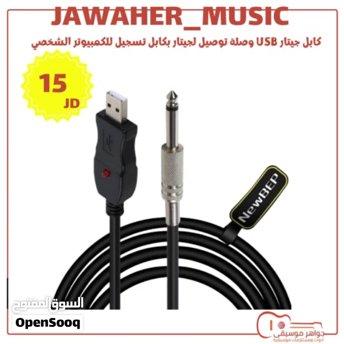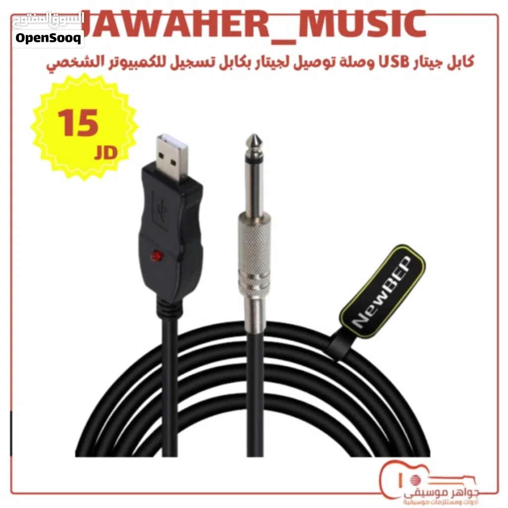 كابل جيتار USB وصلة توصيل لجيتار بكابل تسجيل للكمبيوتر الشخصي