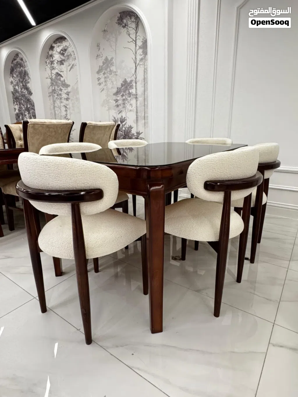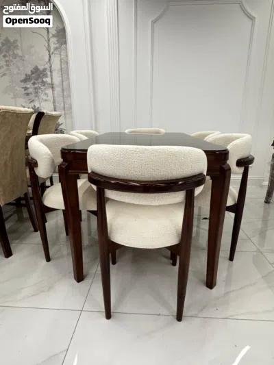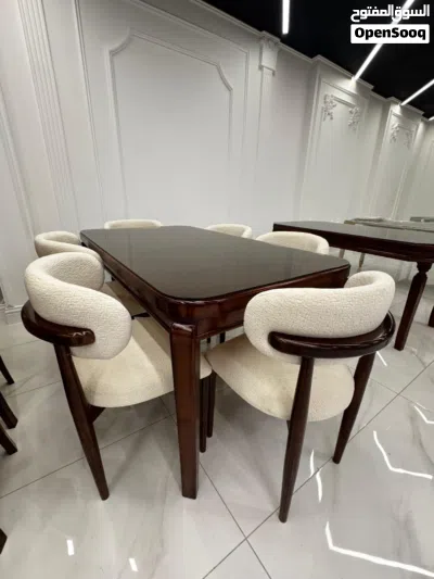 طاولة سفرة بني فخمة مع 6 كراسي بيج*