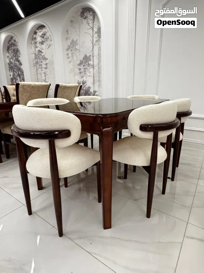 طاولة سفرة بني فخمة مع 6 كراسي بيج* - *المواصفات*: - طاولة سفرة بني أنيقة*خشب لاتيه وزان ب