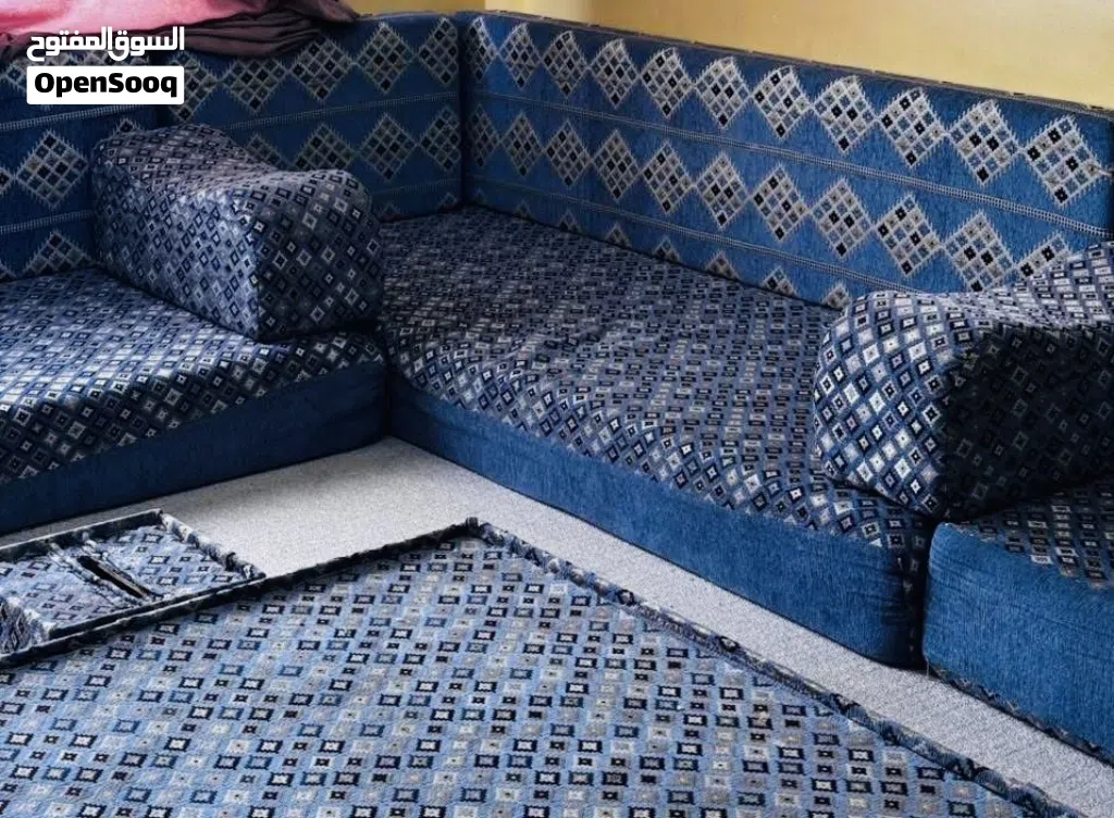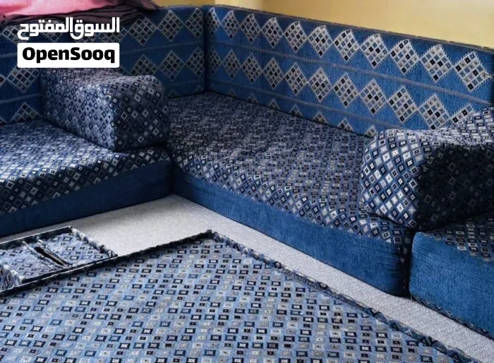 جلسه خليجيه وارد قطر ضغط عالي ممتاز قماش فاخر جدا 7 فرشات مع مساندهم وركايات وطاوله كبيره في الوسط وطاولات صغار جنبها