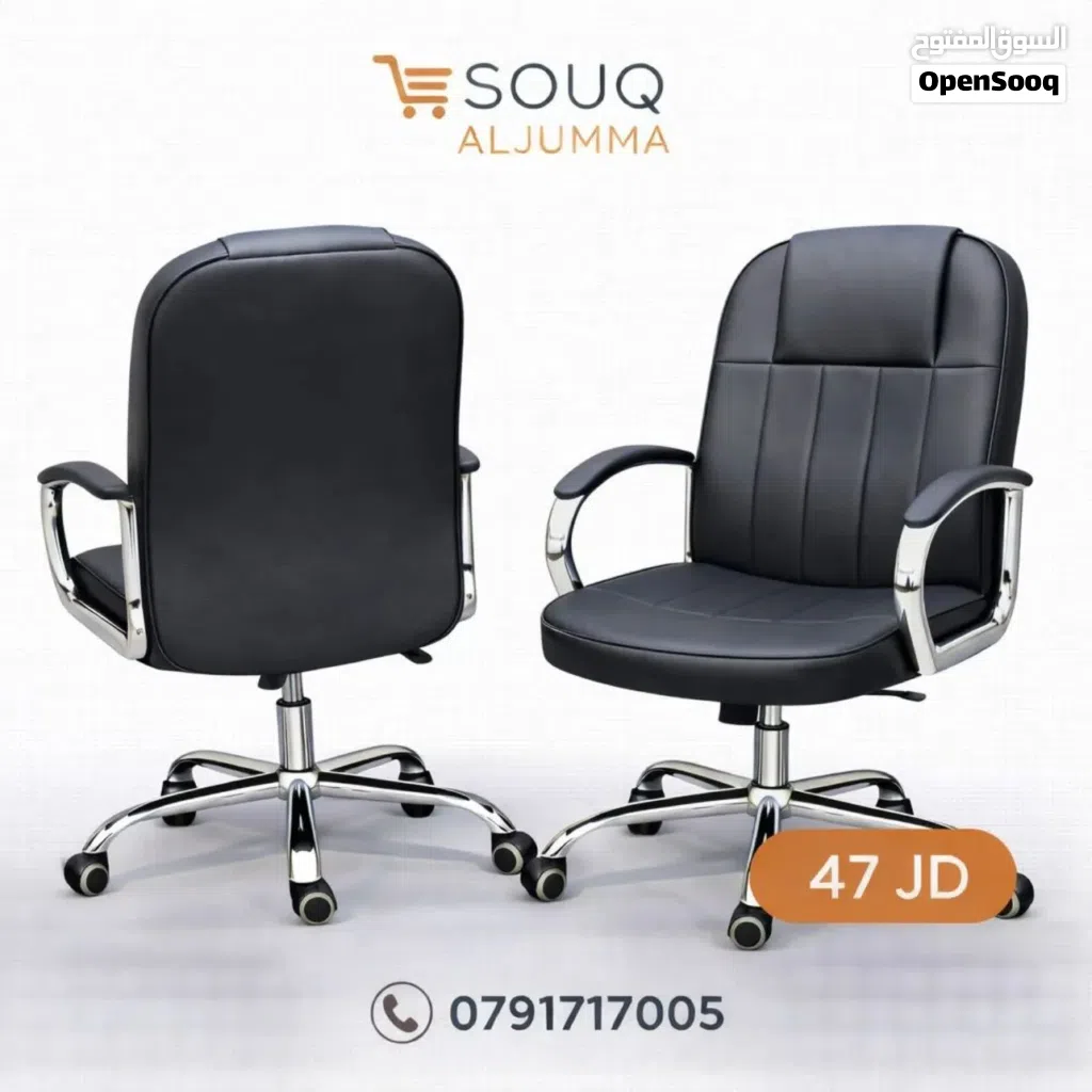 كرسي مكتب جلد عملي وأنيق تصميم مريح يناسب المكاتب، الشركات، والاستخدام المنزلي جلد أسود