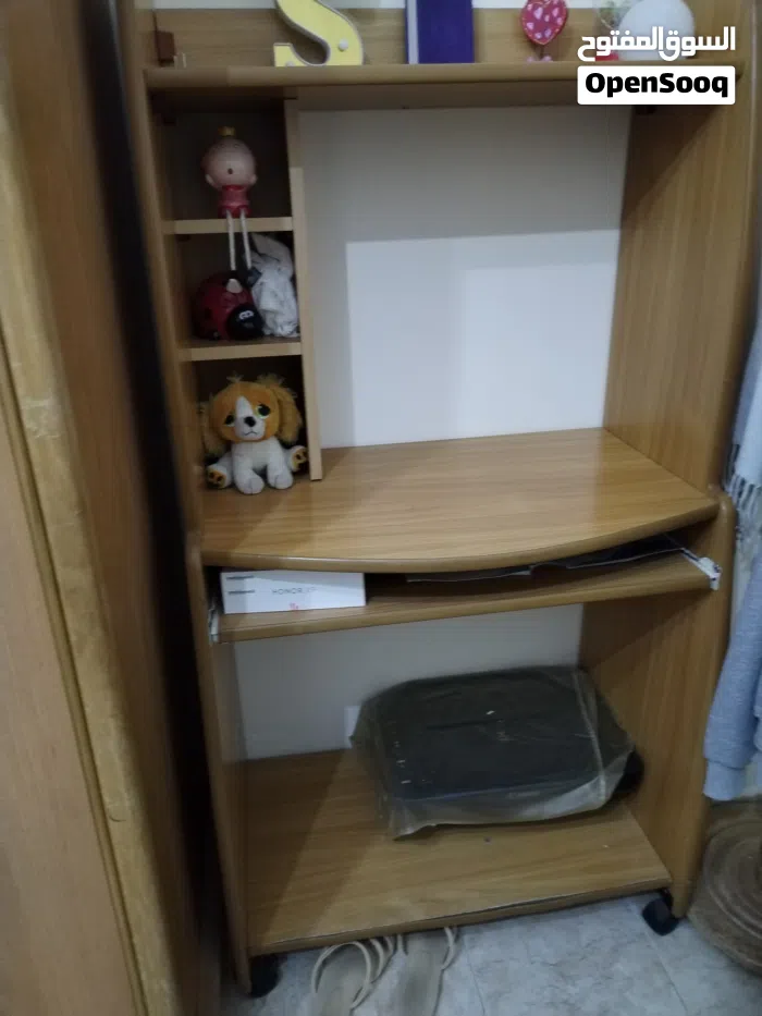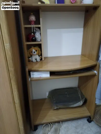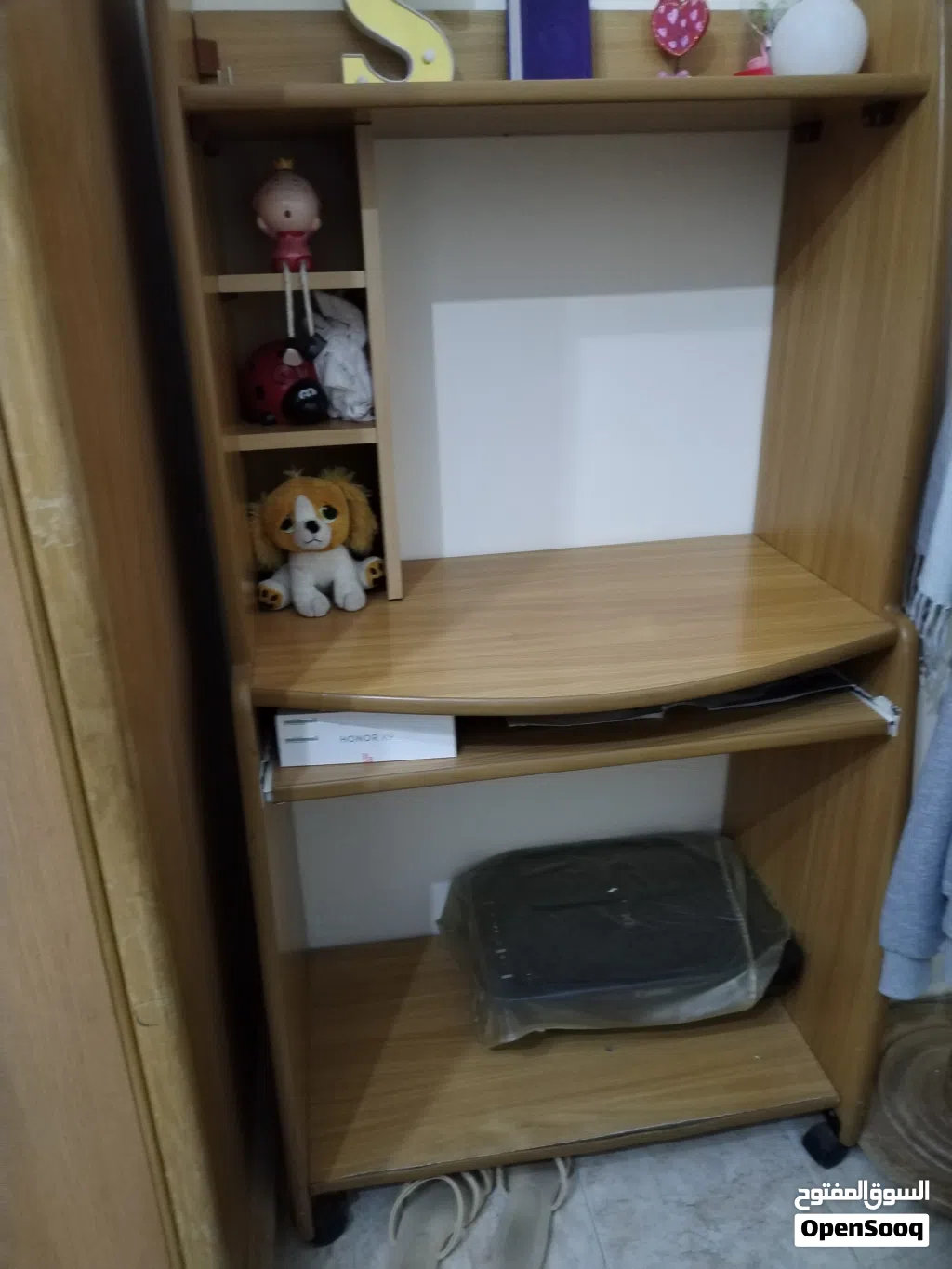 مكتب خشب له رفوف و جرار متحرك بالاضافه ل رفوف جانبيه