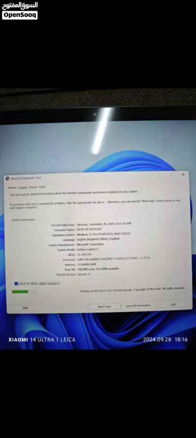 Microsoft Surface laptop 5 i7-12th gen 32GB Ram جديد بسعر خرافي