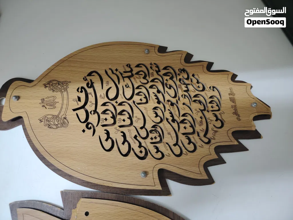 لوحه ورقه شجر مكتوب بداخلها سوره الاخلاص والثانيه سوره الناس