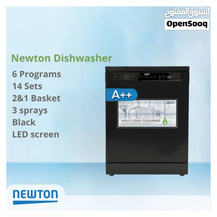 جلاية نيوتن الحافظ 3 مرشات 14 طقم 6 برنامج A++ لون اسود مميز شاشة LED شامل التوصيل