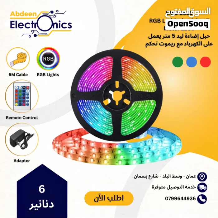 حبل اضاء 5 متر مع ريموت تحكم الالون اخضر احمر ازرق ومكس الوان