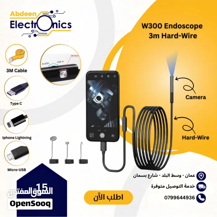كاميرا على سلك بطول 3 متر Endoscope 3M Hard Wire for Iphone and Type C and USB