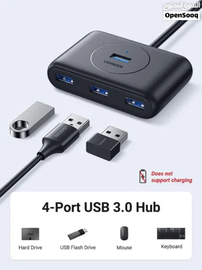 مع موزع UGREEN 4 منافذ USB 3.0، بتقدر توصل لغاية 4 أجهزة بنفس الوقت – مثل الهارد الخارجي، الفلاش، الماوس، الكيبورد، وغيرها.