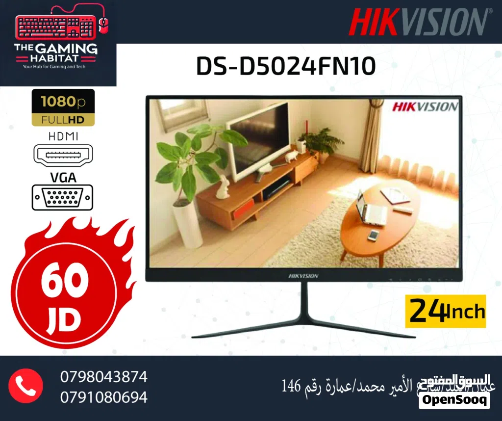 شاشة HIKVISION هايكفيجن 24 انش 60Hz, FULL HD مدخل HD + VGA