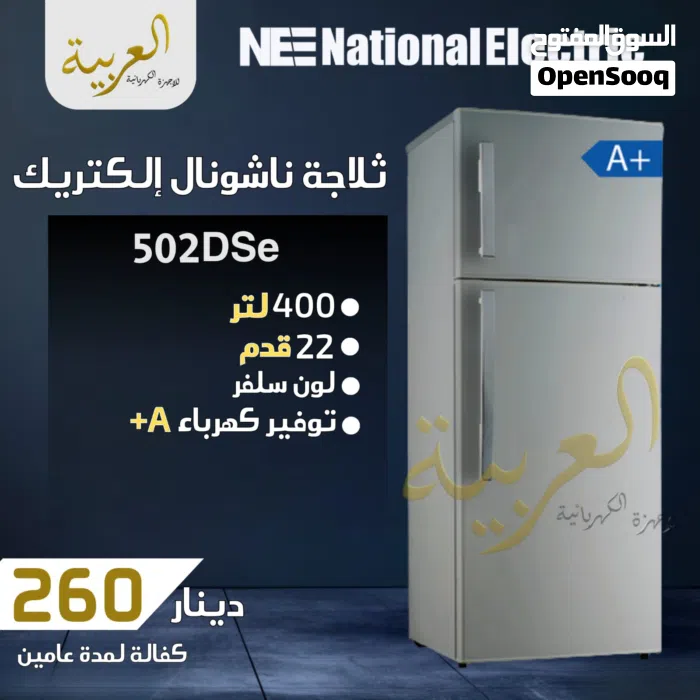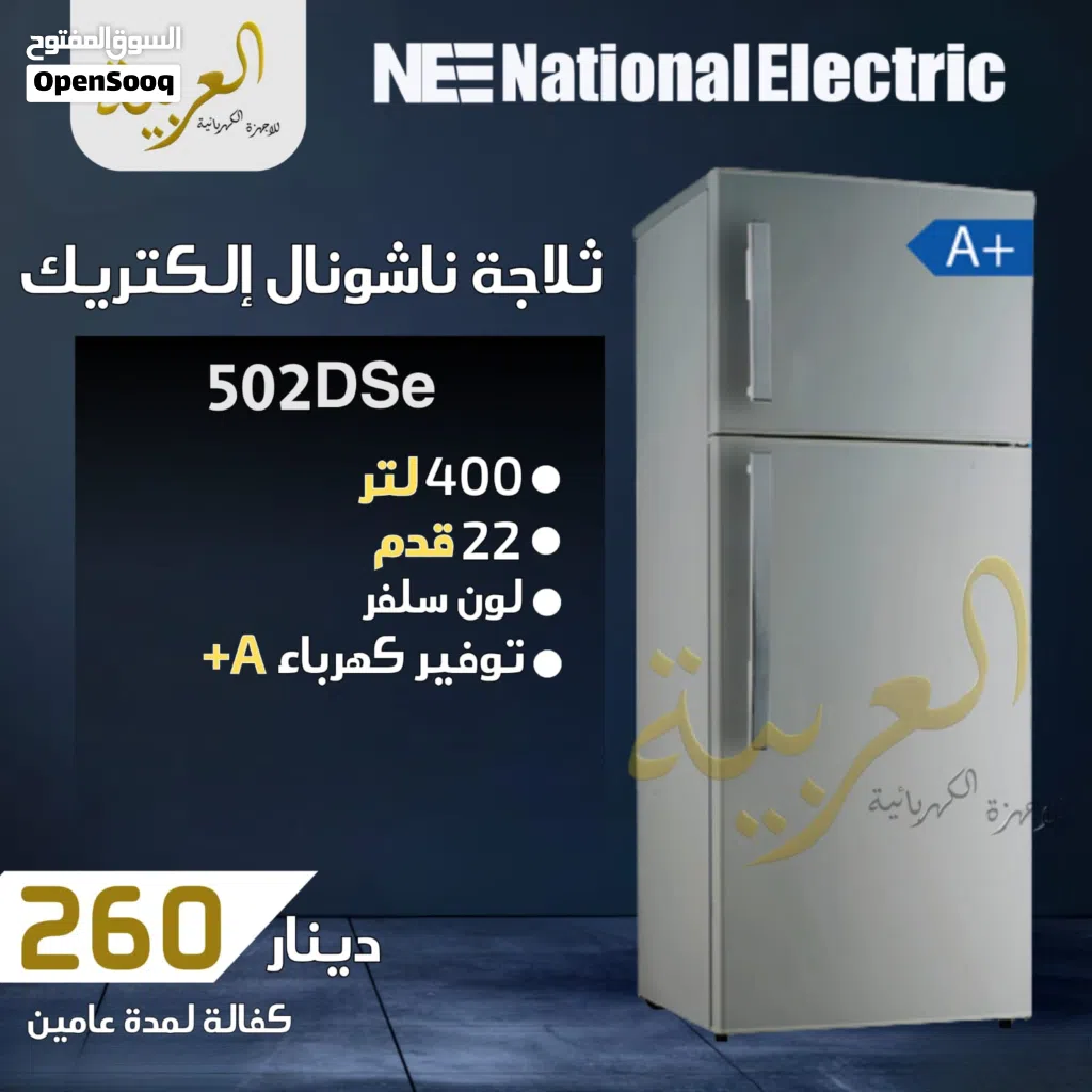 ثلاجة ناشونال الكتريك 400 لتر 22 قدم سلڤر انڤيرتر نظام توفير طاقة A+ كفالة عامين افضل سعر في المملكة