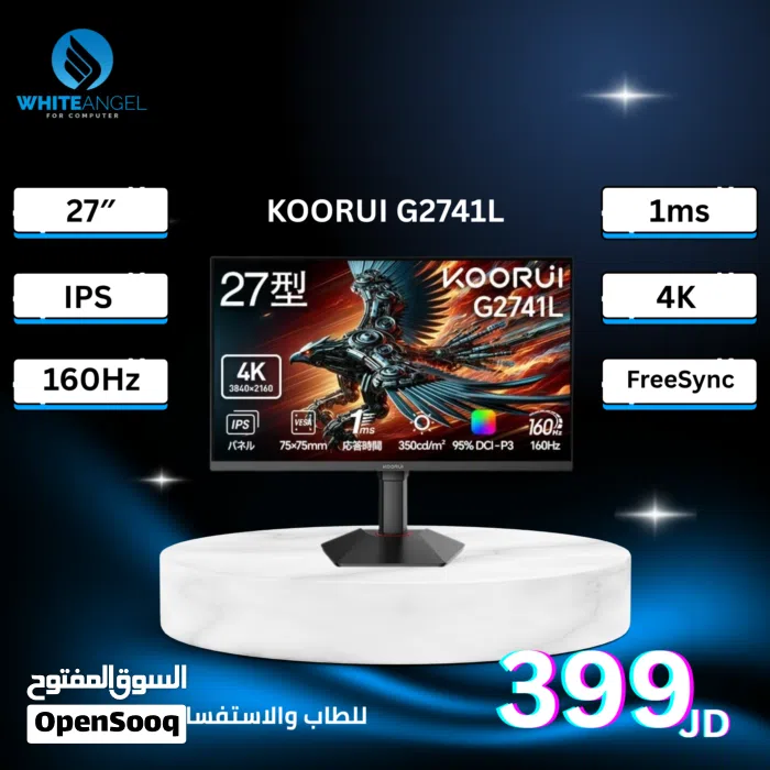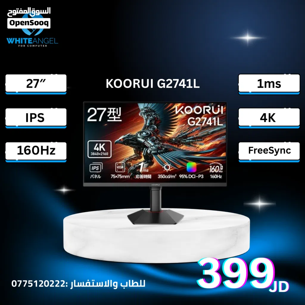 شاشة ألعاب 4K 27 إنش بتردد 160Hz من KOORUI