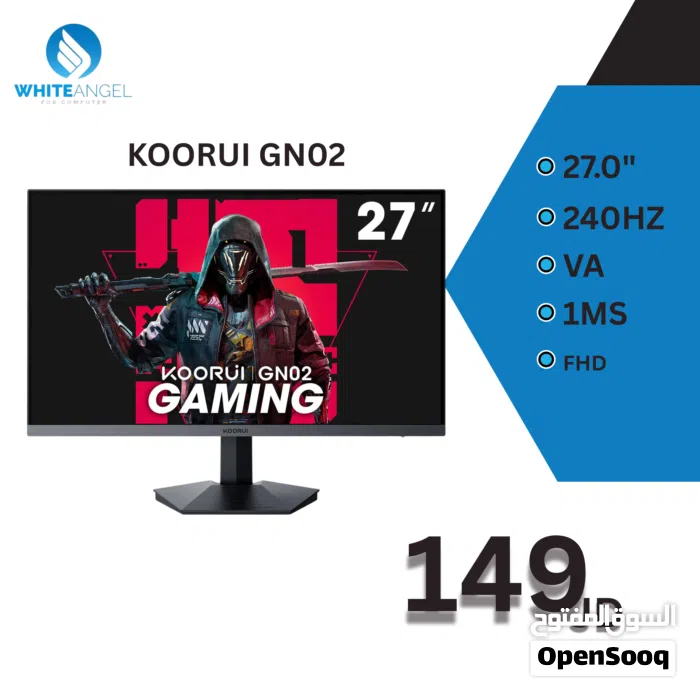 تقدّم KOORUI شاشة GN02 بحجم 27 بوصة ودقّة FHD، مع معدل تحديث 240Hz وزمن استجابة 1ms لتوفير أداء ثابت وسلس في الاستخدامات المكتبية والألعاب.