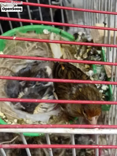 الانثى مع فرخين نهايتهن 25 دينار والانثى جاهزة للزواج وبدها تحط بطن ثاني