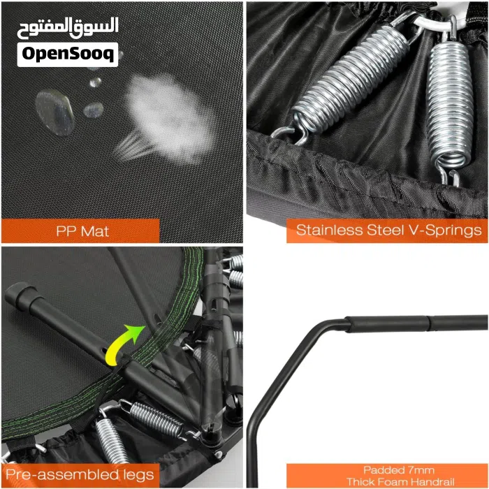 صغير الحجم وسهل الحمل - صُمم الترامبولين القابل للطي ليناسب المساحات الصغيرة في الملعب أو صالة الألعاب الرياضية أو المنزل ، كما أن حجمه المريح يسمح لك بحمله من مكان إلى آخر دون أي متاعب.