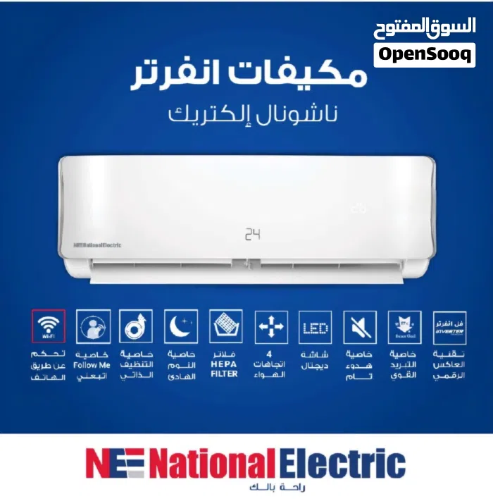 مكيف ناشونال الكتريك الحافظ 1 طن انفيرتر توفير طاقة كفاءة عالية في التدفئة احدث اصدار شامل التركيب