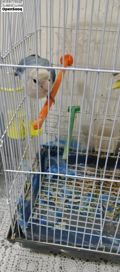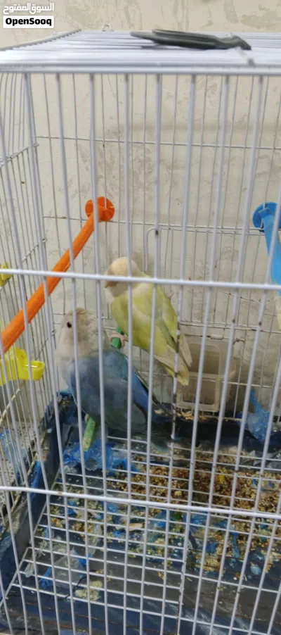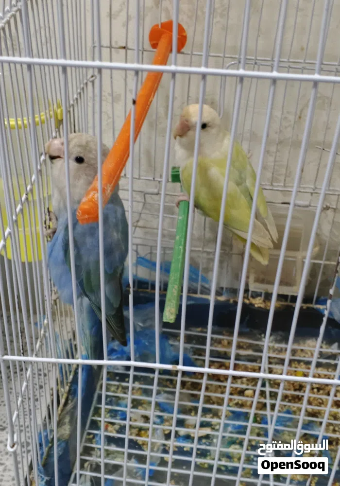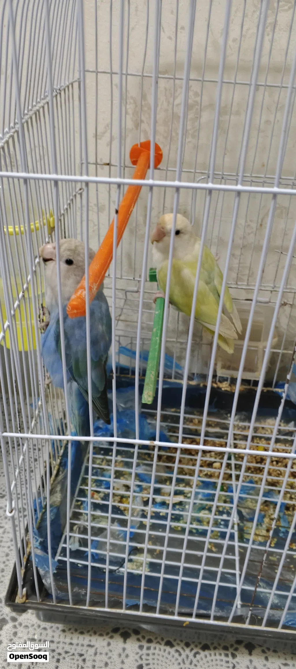 جوز روز الذكر اصفر والأنثى ازرق الذكر كبس الأنثى للبيع او البدل على طير أليف