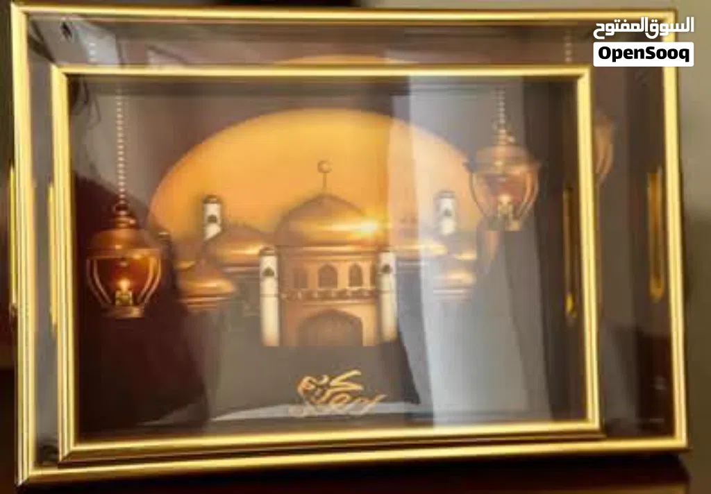للبيع طقم صواني تقديم (أكريليك/خشب بإطار ذهبي) بتصميم رمضاني فاخر وجديد كلياً. الطقم يجمع بين الأناقة والروحانية الرمضانية، مثالي لاستقبال الضيوف أو كهدية مميزة.