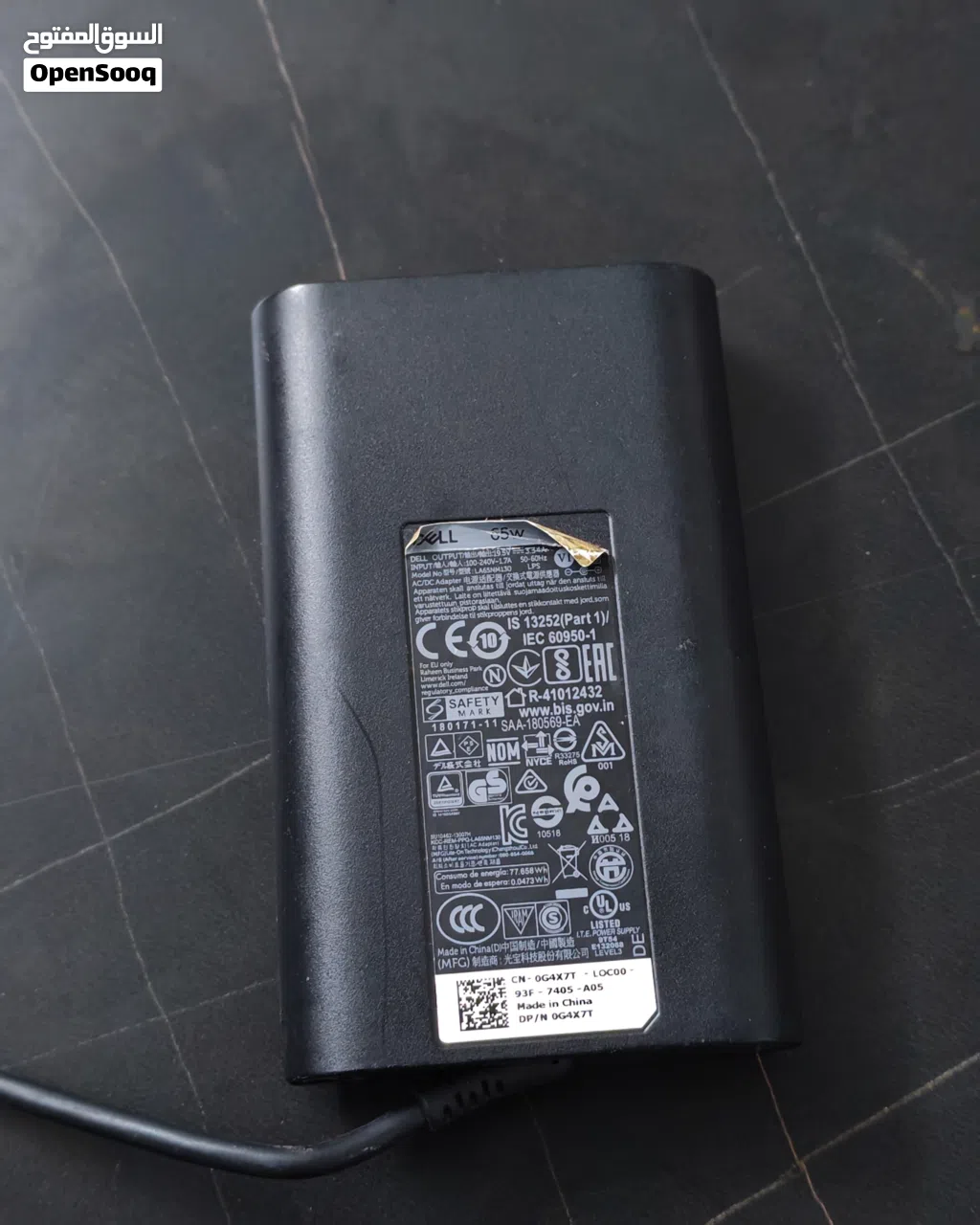 شاحن لابتوب DELL الاصلي 100/100 مستعمل بحالة ممتازه محفور DELL