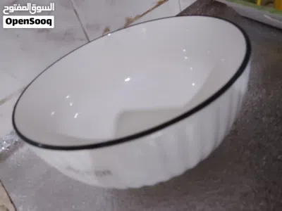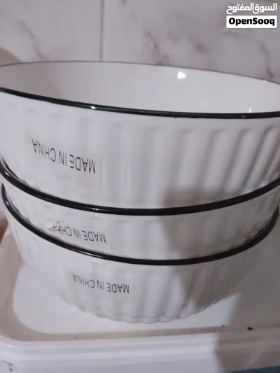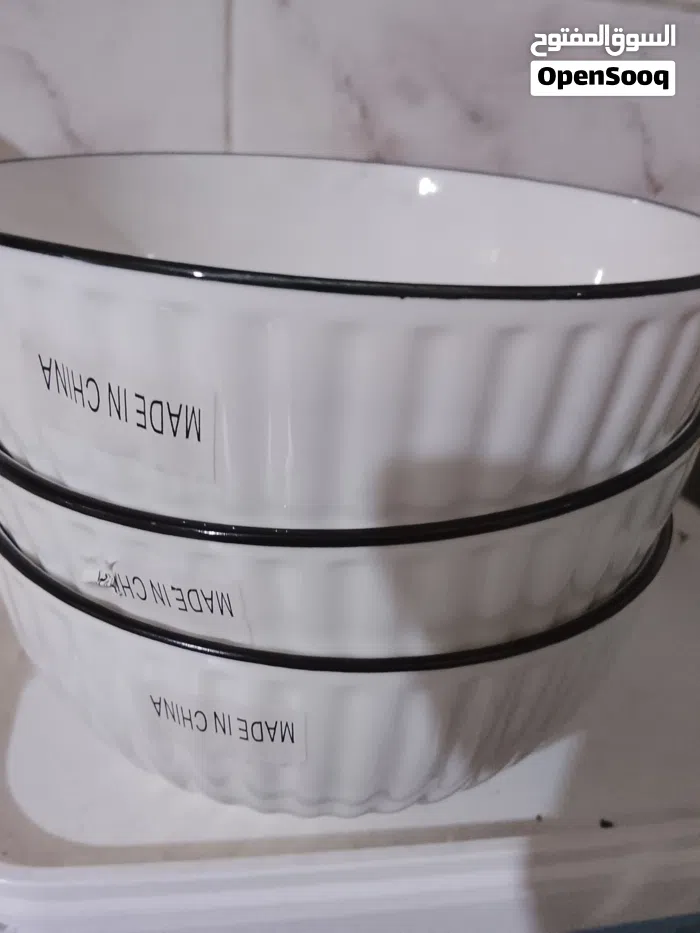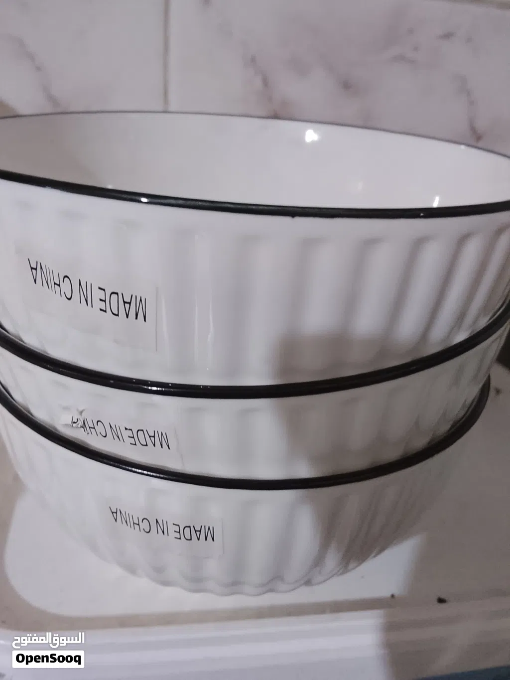 6 صحون شوربة حجم وسط محزز وإطار أسود من أعلى بورسلان لون ابيض زجاج عميق انيق وفخم