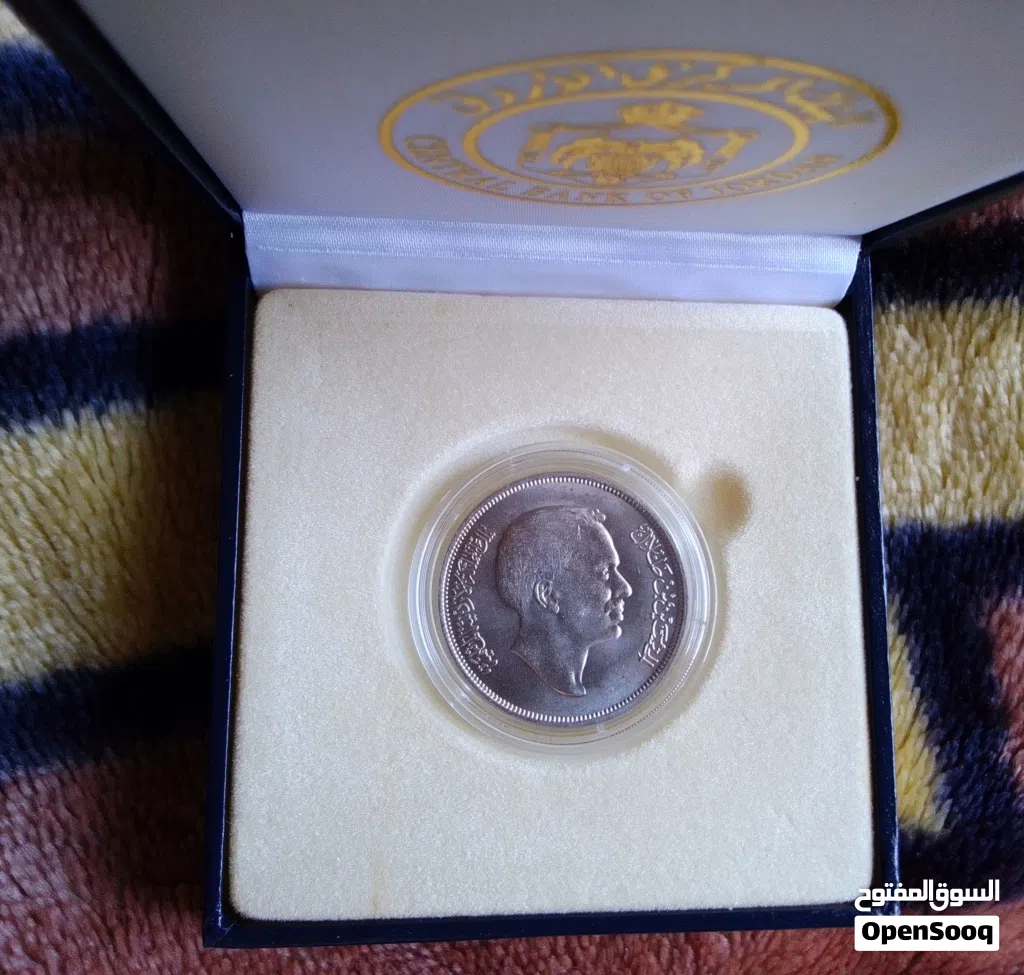 عملة تذكارية للملك حسين بمناسبة تأسيس الفاو منظمة الاغذية والزراعة العالمية السعر 8 دنانير